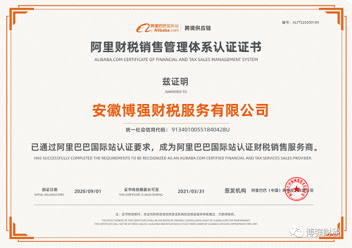 博强财税成为阿里巴巴国际站认证财税服务商和阿里巴巴国际站认证财税销售服务商